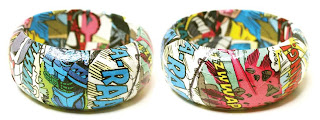 COMIC BOOK BANGLES! Torn strips of REAL AUTHENTIC Vintage Comic Books!!! Glazed onto a solid wood bangle, and multi-layered with sealing laquer!